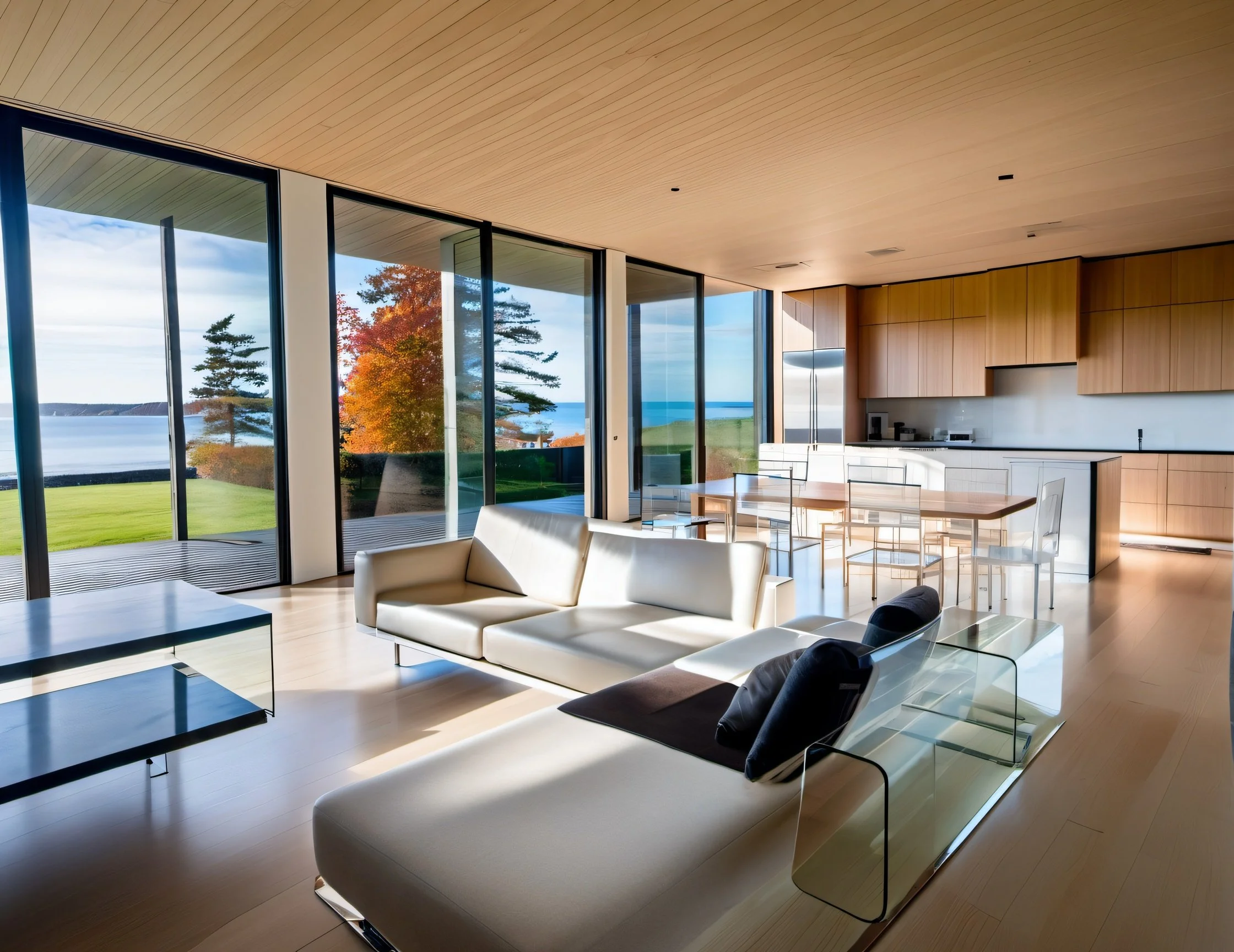 The rear facade of the house was an expansive wall of glass, seamlessly integrating with the surrounding environment and capitalizing on the majestic views of Eureka Bay. The commitment to the local context extended to the use of natural materials indigenous to Northern California, with redwood siding and natural stone tiles chosen as key finishes.